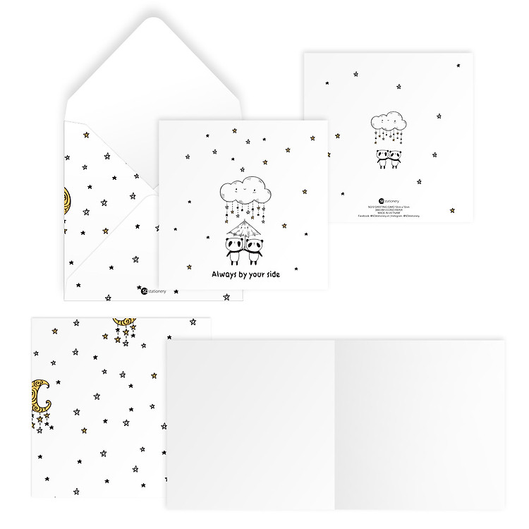 Combo 4 Thiệp Panda (Gấu trúc) của SDstationery mang hình minh họa đáng yêu và thông điệp ngọt ngào, thích hợp tặng bạn bè, người thân các dịp sinh nhật, chúc mừng, cảm ơn, gửi lời tâm tư đến crush hay người Khổ vuông cầm gọn tay và nhiều không gian để ghi lời chúc. Phong bì họa tiết đẹp mắt.