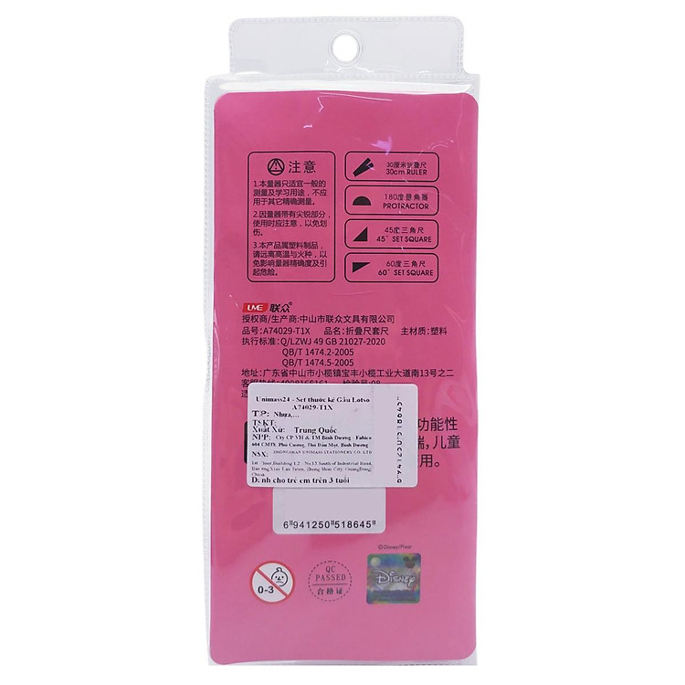 Các thông tin khác: Bộ Thước Eke (4 món) Gấu Lotso – Ume A74029-T1X