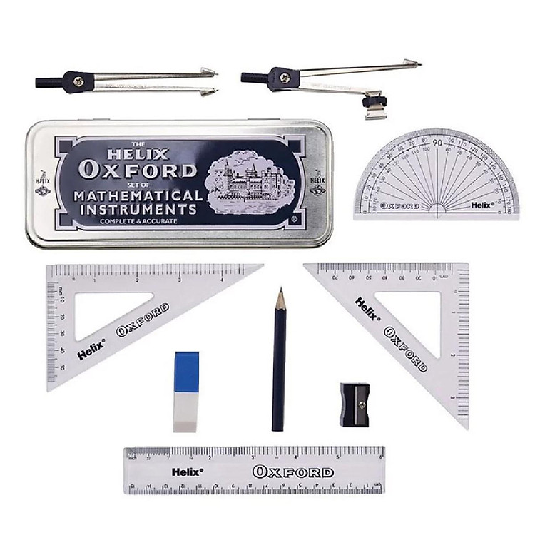 Bộ Thước Eke 9 Món Học Toán Hộp Thiếc – Helix
