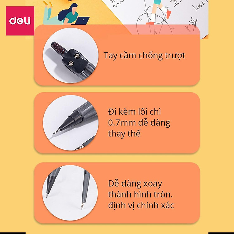 Tính năng chính của Bộ Thước Kẻ Compa Deli (8 món)