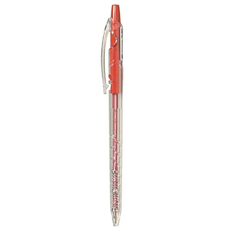 Bút có thiết kế đơn giản, toàn bộ thân bút làm từ nhựa trong, nút bấm bằng nhựa cùng màu với ruột bút. Viết rất trơn, êm, mực ra đều, liên tục.