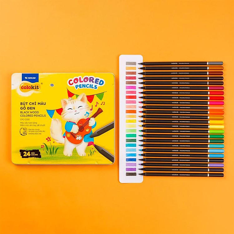 - Hộp 24 bút chì màu gỗ đen Black Wood từ thương hiệu Colokit.
