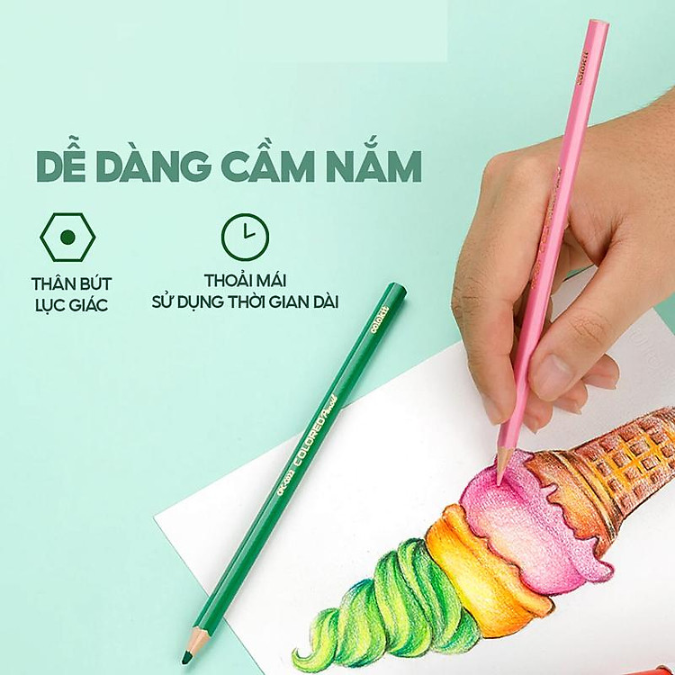 – Bút chì màu với thân bút lục giác dễ cầm nắm và thân thiện với người sử dụng.