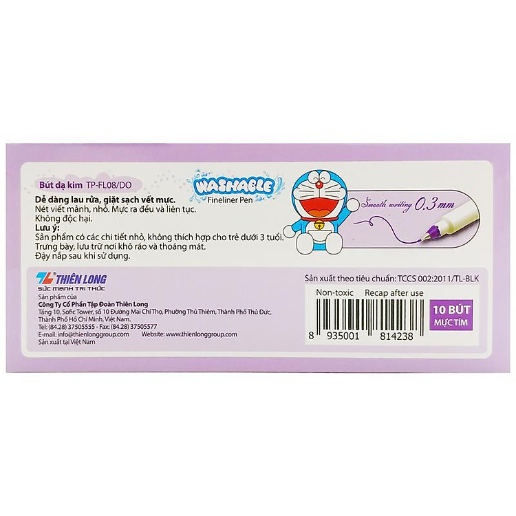 - Hộp gồm 10 bút dạ kim Thiên Long FL-08/DO, mực tím.