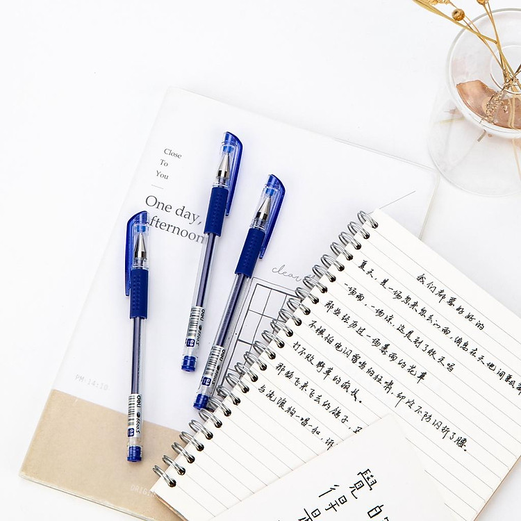 - Combo 12 bút gel Deli với mực dung lượng lớn, viết được lên tới 400m.