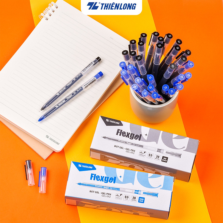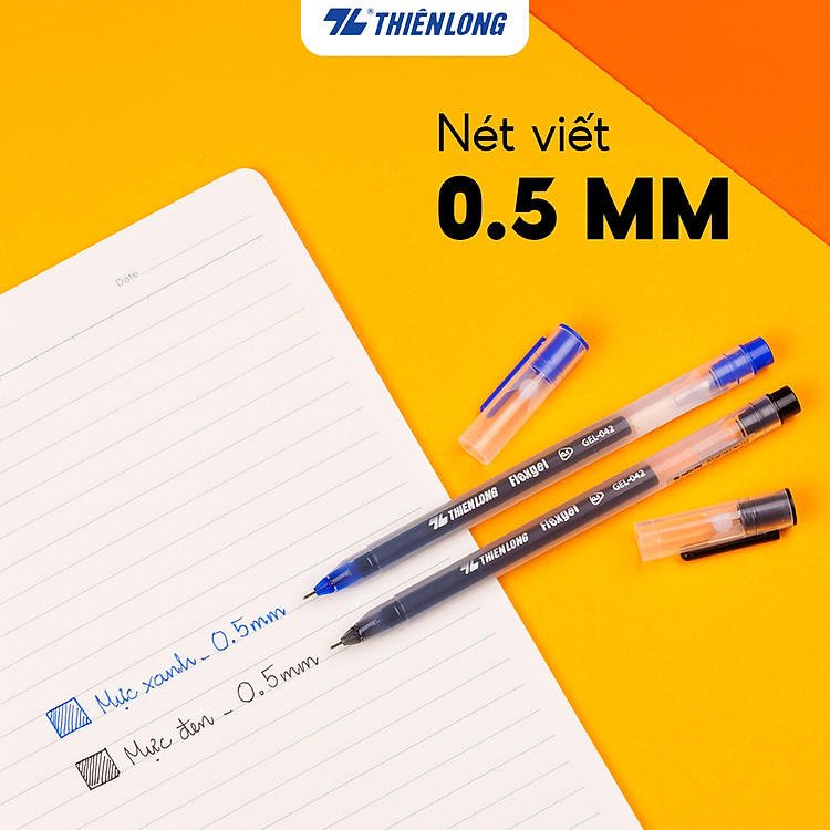 - Bút gel Thiên Long với ngòi 0.5mm, viết êm mượt và không gây mỏi tay.