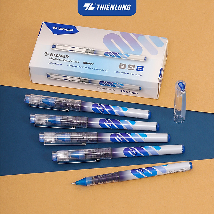 - Bút lông bi Thiên Long RB-007 với công nghệ Free Ink System.