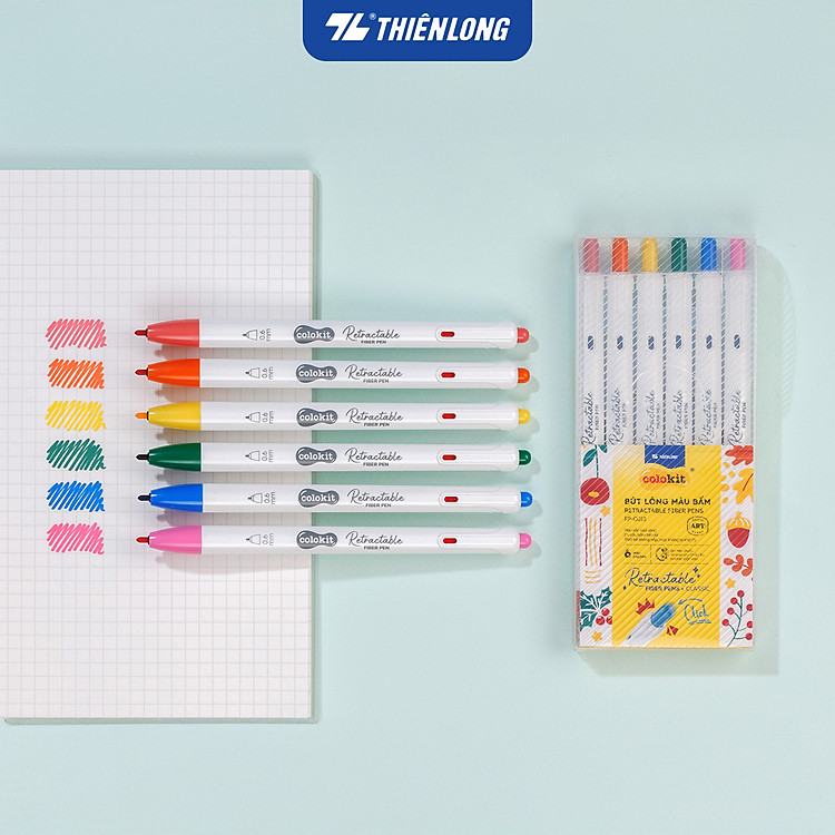 Bút Lông Dạng Bấm Thiên Long Colokit FP-C013 (6 màu) sẽ rất hữu ích cho học sinh, sinh viên. Nếu bạn ưu tiên sự gọn gàng và hiệu quả, đây là lựa chọn đúng đắn.