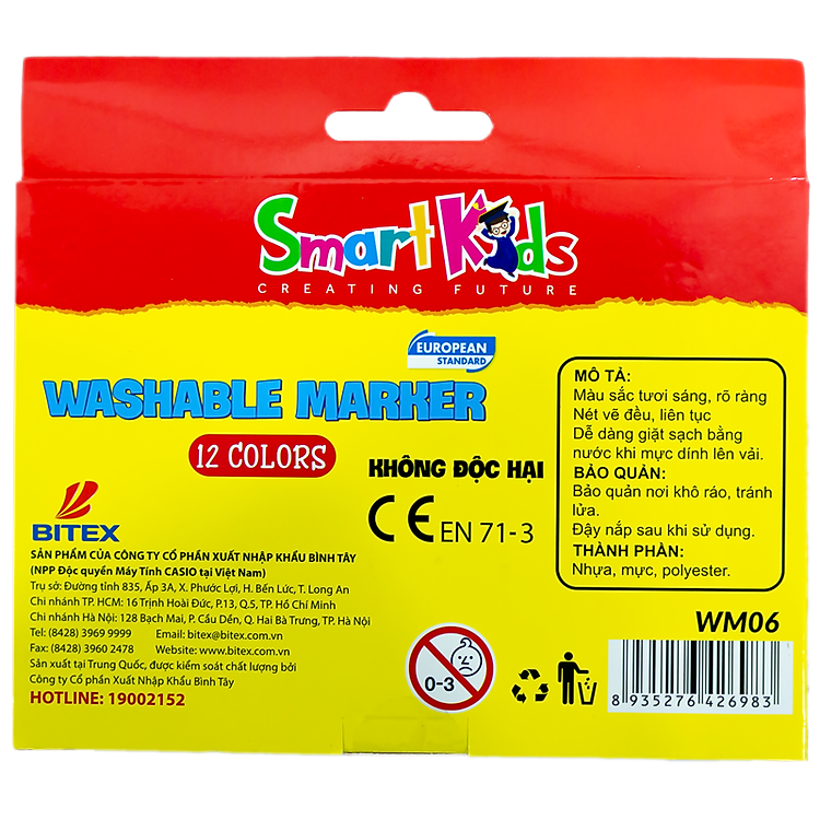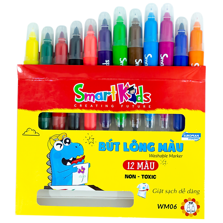Các thông tin khác: Bút Lông Màu 2 Đầu Rửa Được SMART KIDS WM06 (12 màu/hộp)