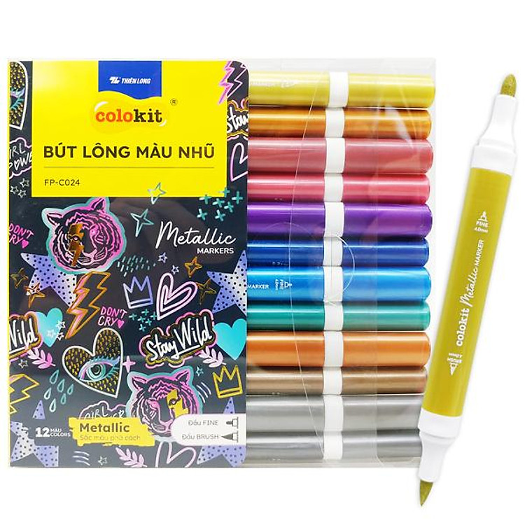 - Sản phẩm gồm 12 bút lông màu nhũ từ thương hiệu Colokit.