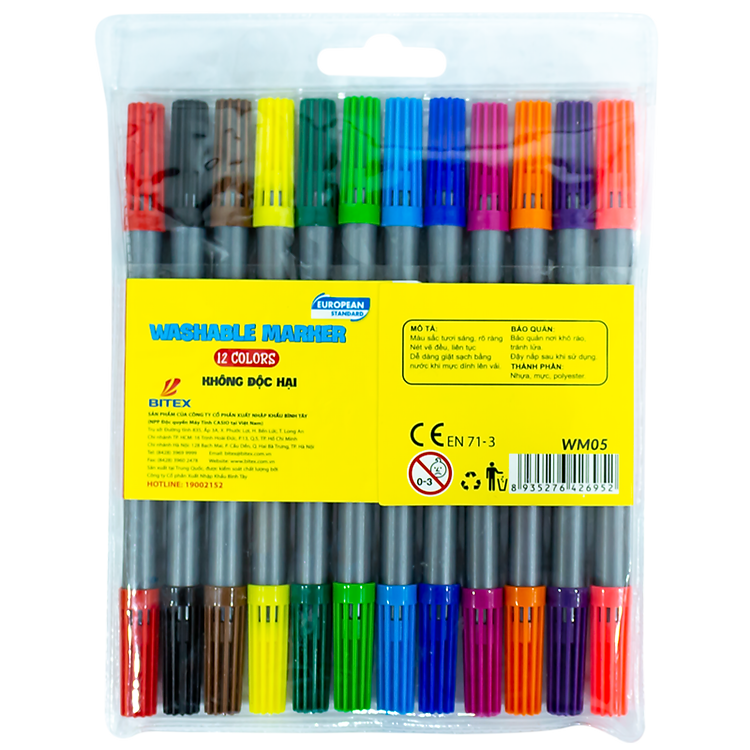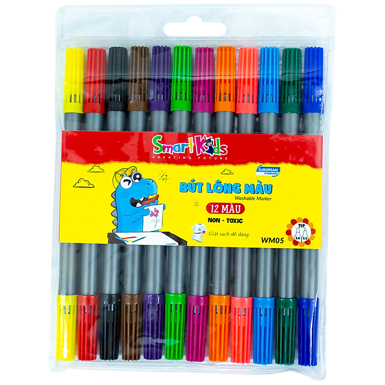 - Bút lông màu rửa được hai đầu Smartkids WM05 gồm 12 màu tươi sáng và bền màu.