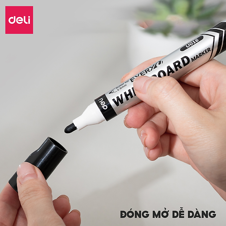 - Bút Lông Viết Bảng Trắng Deli EU016 có đầu bút 2mm, nhanh khô và dễ xóa.