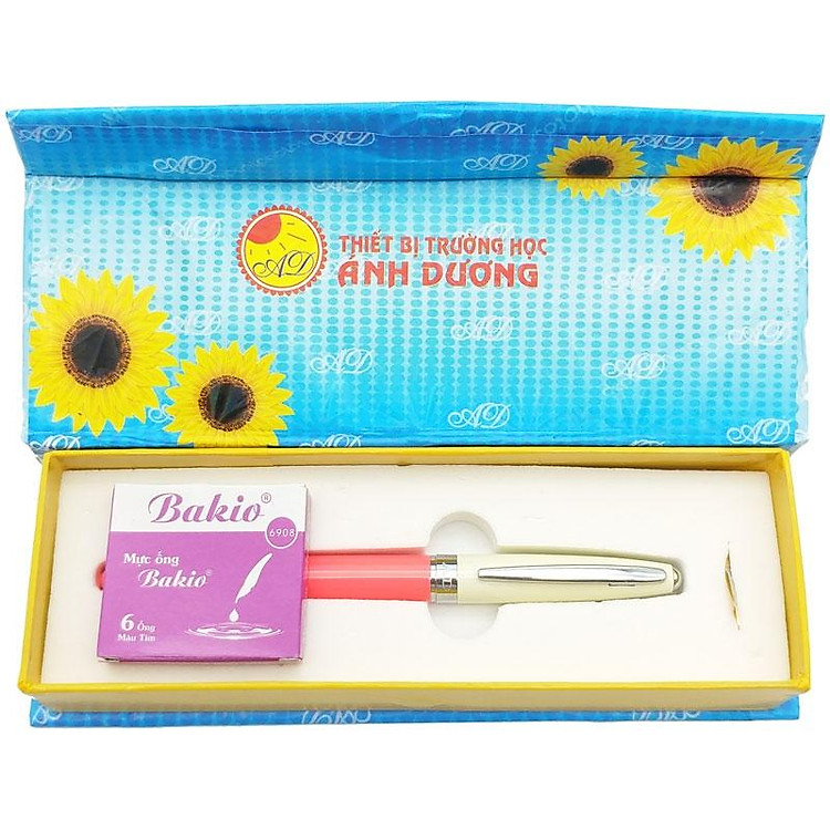 Bút máy có thiết kế thon gọn với độ dài vừa phải với tay các em nhỏ, họa tiết trang trí đơn giản. Vì thiết kế bút nhẹ nên khi rơi sẽ giảm được tổn thương tới ngòi, đây là thiết kế khắc phục được những khó khăn thường gặp khi sử dụng bút máy nói chung. Ruột bơm mực của bút máy mài ngòi Ánh Dương AD046 có dạng pitong rất linh động trong quá trình bơm mực, giúp mực bơm nhanh, tránh tình trạng tắc nghẽn.