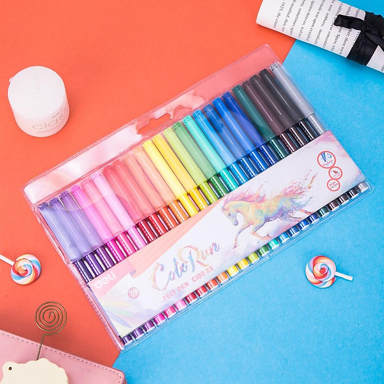 - Bút màu lông 1.0mm của Deli, có sẵn 12/18/24 màu/hộp.
