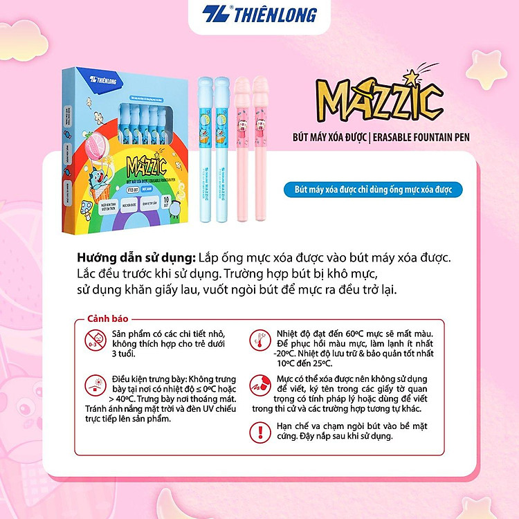 - Sản phẩm bao gồm 1 bút máy và 10 ống mực xóa được Mazzic.