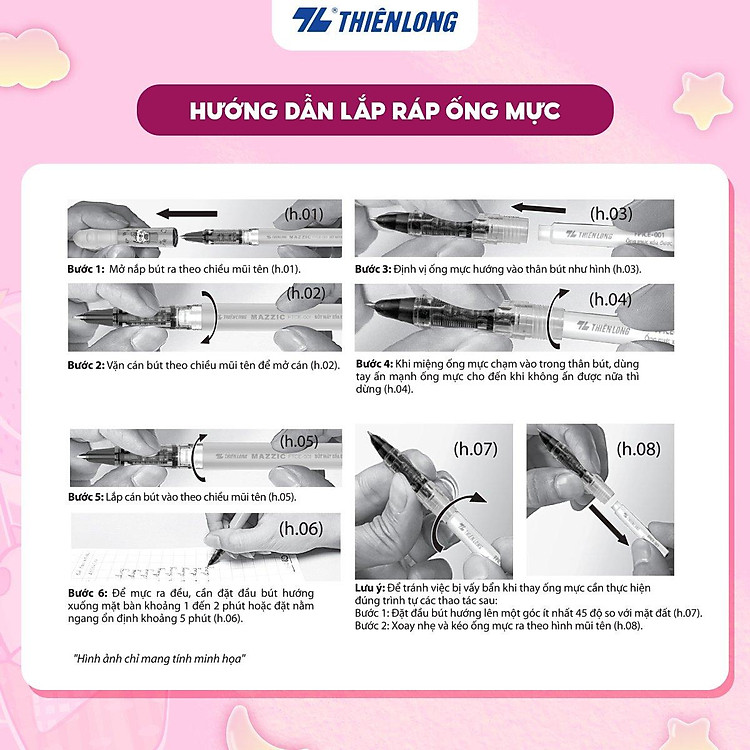***Lưu ý: Tặng kèm 01 ống mực theo màu thân gắn sẵn trong bút.