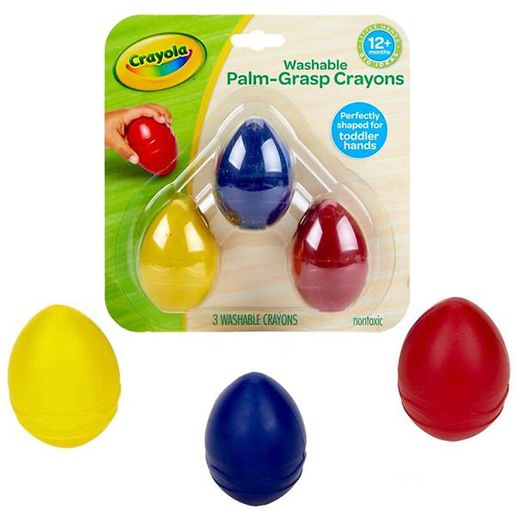 - Vỉ 3 bút sáp màu dạng quả trứng dễ cầm nắm, phù hợp cho trẻ em từ 12 tháng tuổi trở lên.