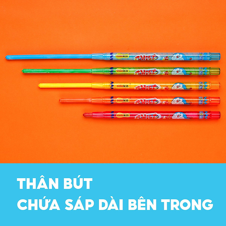 - Cơ cấu vặn xoắn dễ dàng đẩy lõi sáp ra, giúp trẻ em cầm nắm chắc chắn.