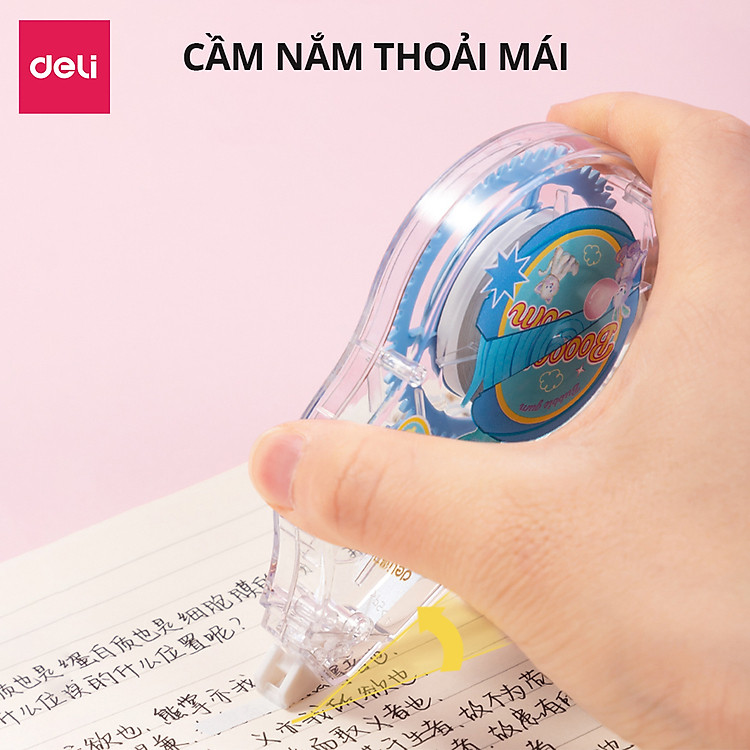- Bút xóa băng Gấu Bông 30M Deli, che phủ tốt và khô nhanh.