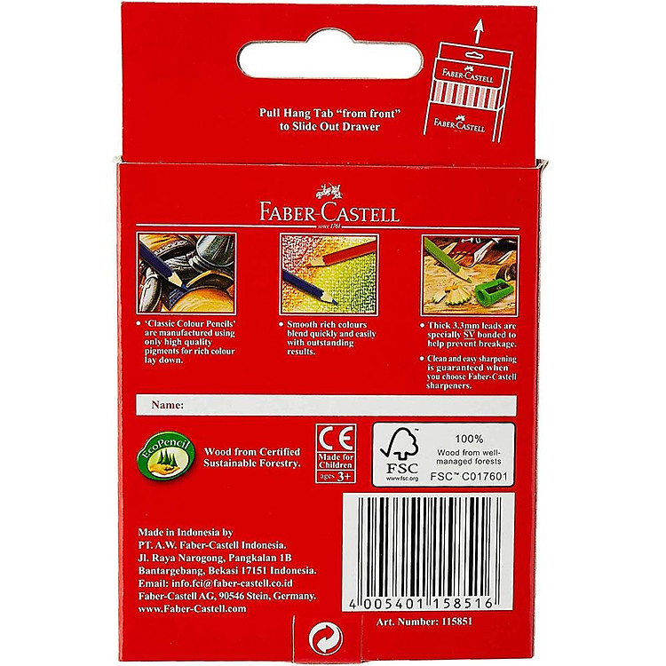- Bút chì màu Classic Faber-Castell chất lượng cao, màu sắc tươi sáng.
