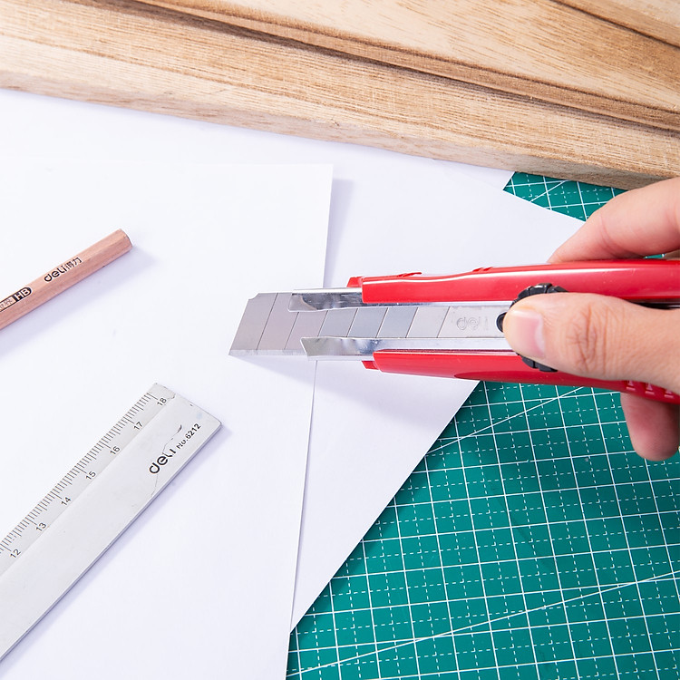 Khám phá sản phẩm văn phòng Dao rọc giấy Deli WD10040 (lưỡi SK5, đỏ)