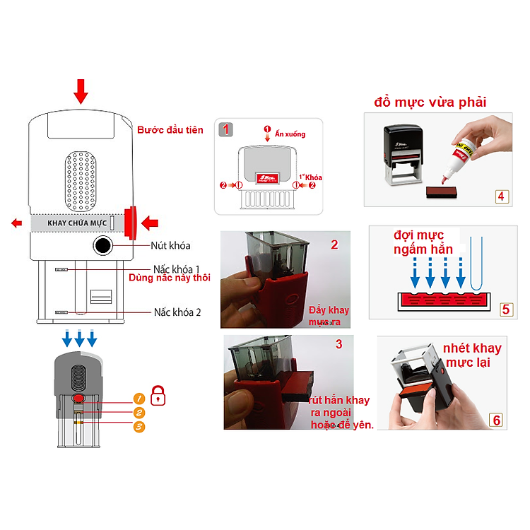 - Cách sử dụng: Cần ấn dấu dứt khoát, đặt trên bề mặt phẳng để đảm bảo kết quả đẹp.