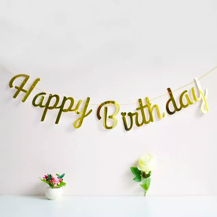 - Dây chữ “HAPPY BIRTHDAY” ép kim kiểu mới dùng để trang trí sinh nhật.