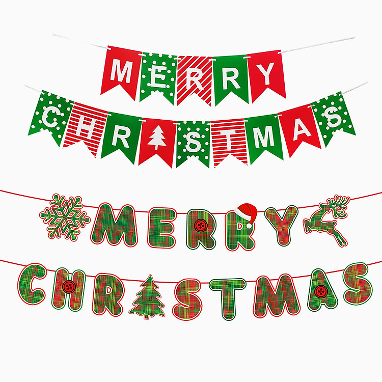 Băng rôn trang trí kèm theo dây treo giúp bạn trang trí Giáng Sinh với dòng chữ Merry Christmas nhiều màu sắc.