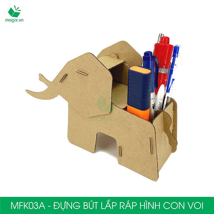 - Sản phẩm độc đáo: Đựng bút hình con voi lắp ghép từ giấy carton cao cấp, phù hợp cho cả trẻ em và người lớn.
