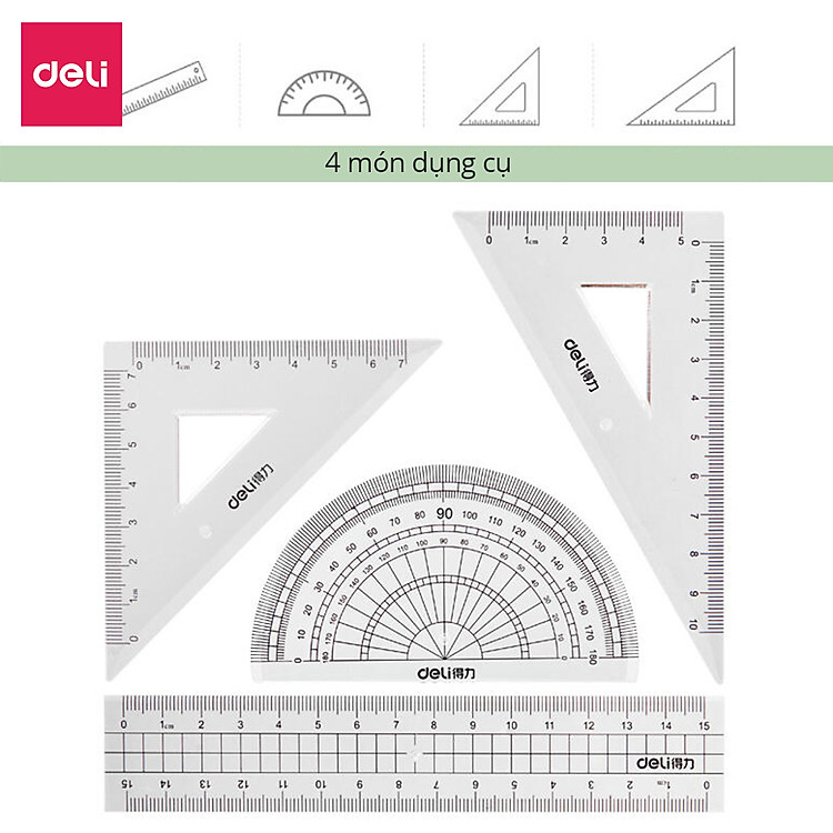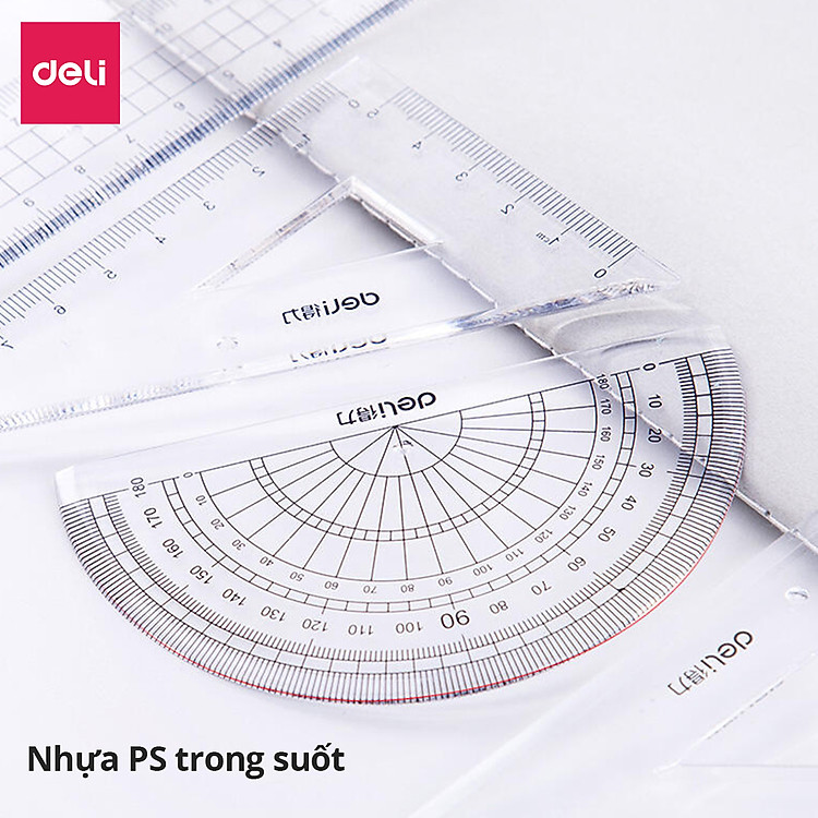 Các thông tin khác: Dụng Cụ Eke Thước Đo Độ Học Sinh Deli (1 bộ)