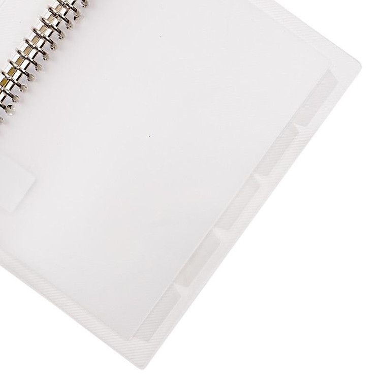 – File nhựa PP dày 0,7 mm vân chéo gắn còng sắt 26 chấu chắc chắn, lưu, tháo, thay thế ruột sổ dễ dàng khi sử dụng;