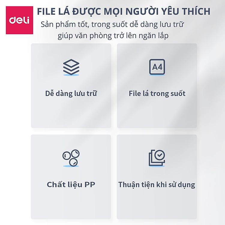 - Khổ A4, chất liệu nhựa PP chất lượng cao.