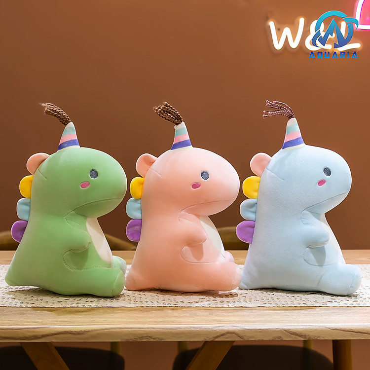 Gấu Bông Thú Nhồi Bông Khủng Long Đội Mũ Chóp Cầu Vồng 30cm Siêu Dễ Thương