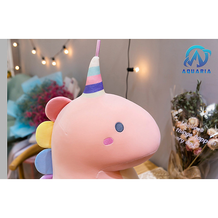 - Gấu bông khủng long đội mũ chóp cầu vồng, kích thước 30cm.