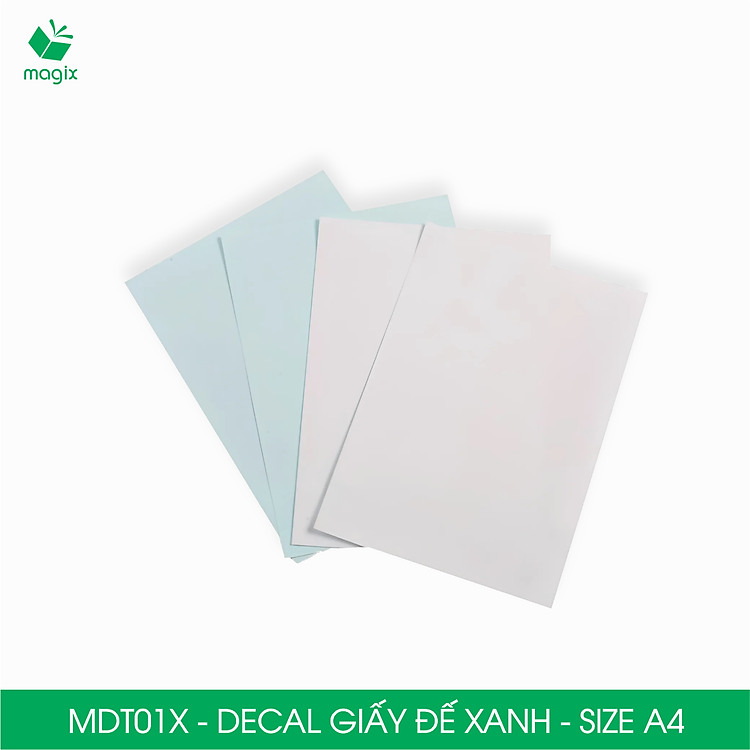 - Sản phẩm: Giấy decal đế xanh, khổ A4, 50 tờ/xấp.