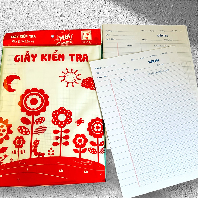 - Giấy kiểm tra Kẻ ngang kích thước 18×25 cm, gồm 20 tờ đôi và 10 tờ đơn.