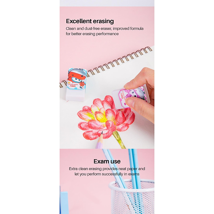 - Thiết kế nhỏ gọn, tẩy sạch ít bụi, giúp trang giấy sạch sẽ.