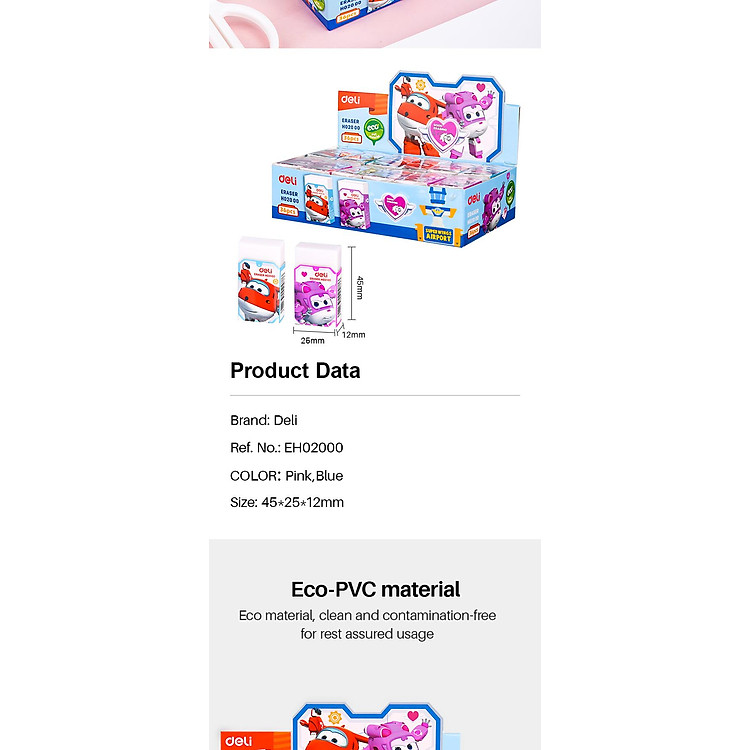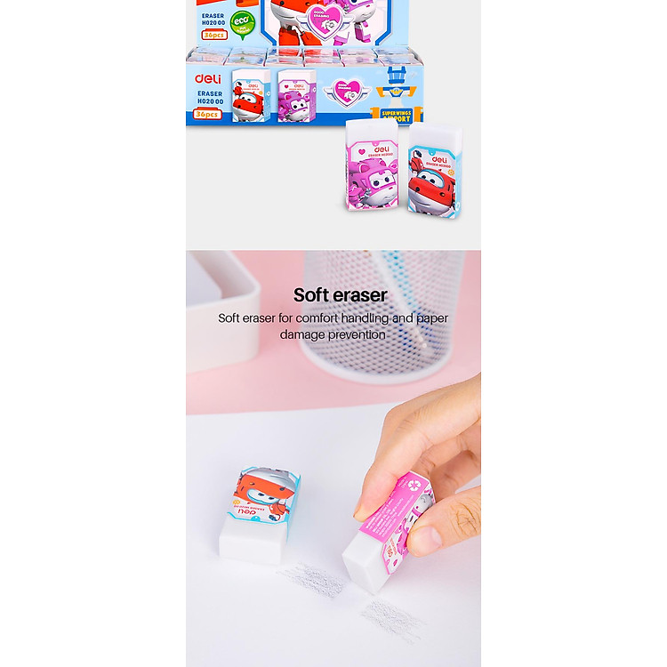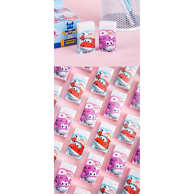 - Gôm tẩy Deli x Superwings có thiết kế hoạt hình dễ thương, phù hợp cho trẻ em.