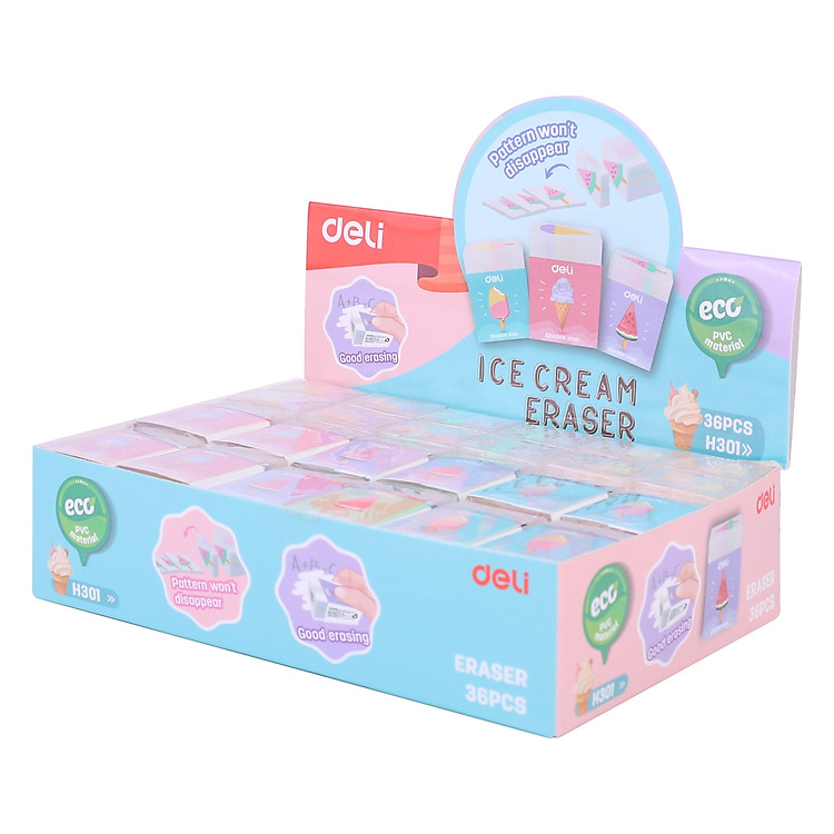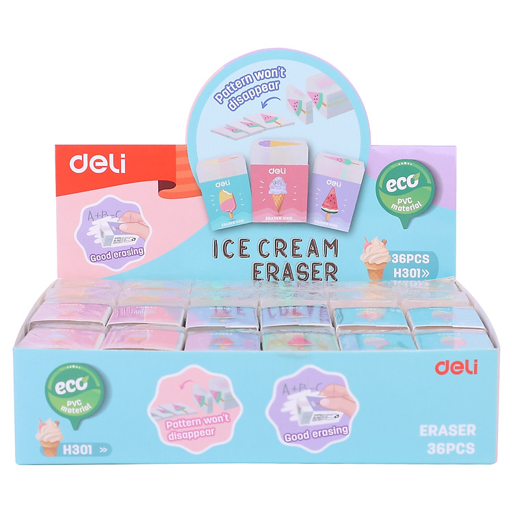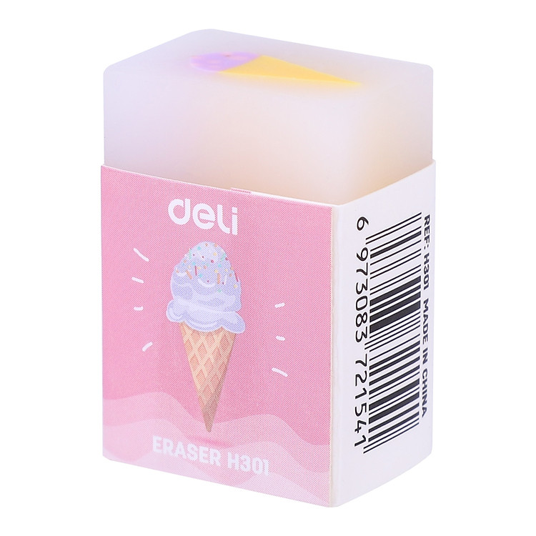- Tên sản phẩm: Gôm tẩy thạch Deli hình kem hoa quả – Combo 3 chiếc (Mã sản phẩm: EH301).
