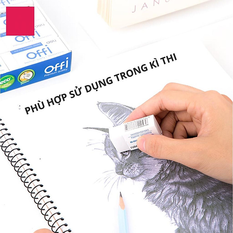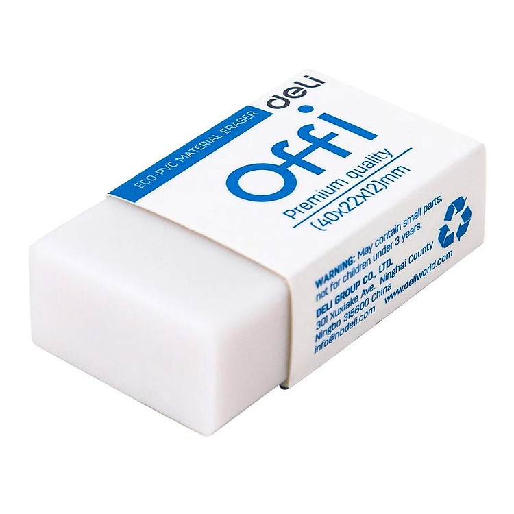 - Gôm Trắng Deli H03010 thiết kế dạng khối, bọc giấy tiện lợi.