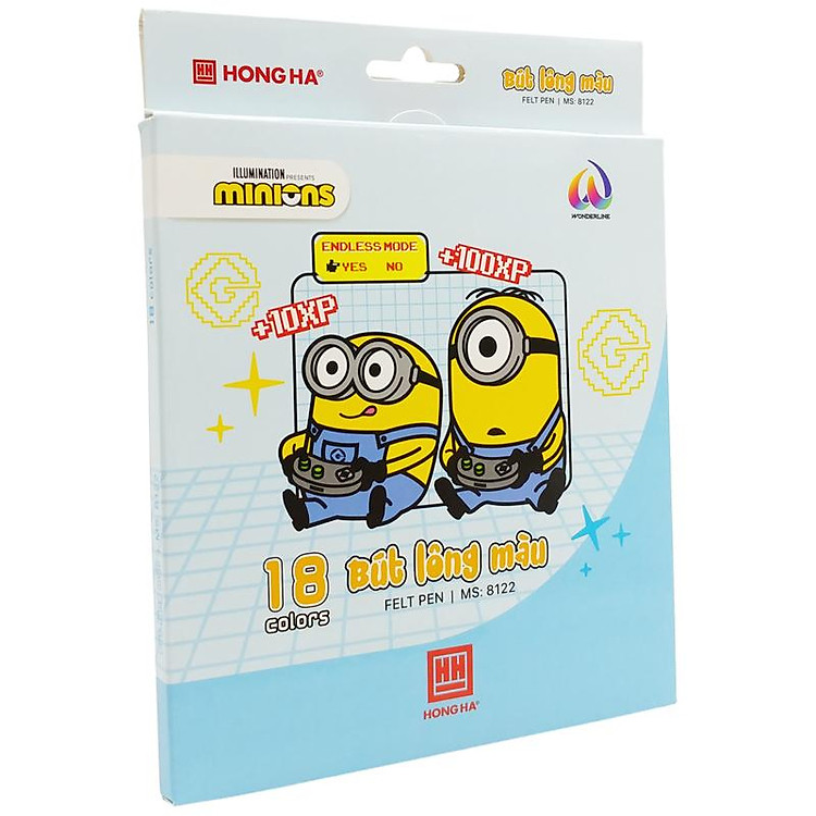 - Hộp 18 Bút Lông Màu Minions từ thương hiệu Hồng Hà, sản xuất tại Trung Quốc.
