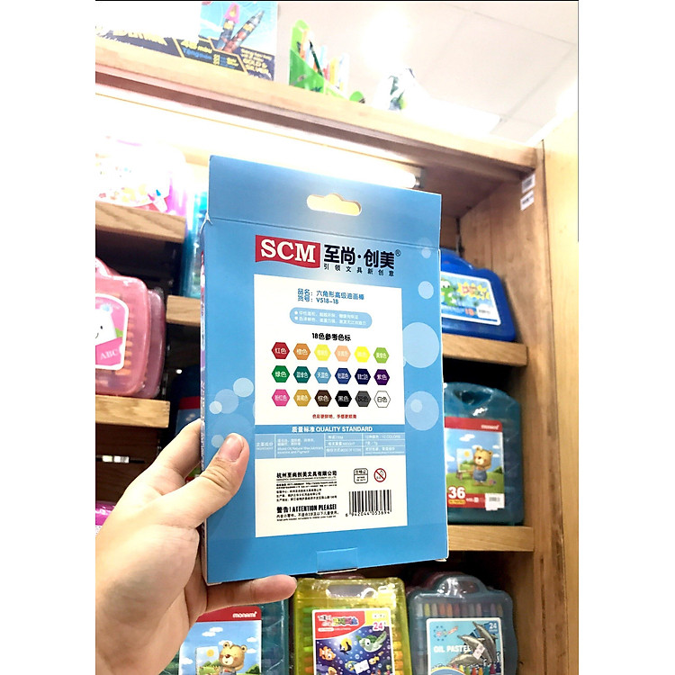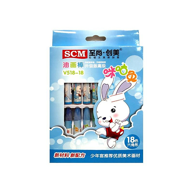 - Hộp gồm 18 bút sáp dầu SCM V518-18, giúp trẻ phát huy sự sáng tạo nghệ thuật.