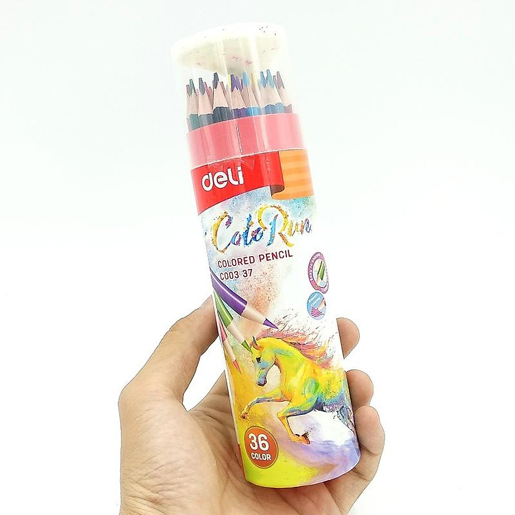 - Hộp bút chì Deli gồm 36 màu sắc phong phú, tươi mới và mịn màng.