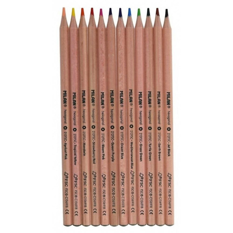 - Hộp 12 bút chì màu gỗ tái chế từ thương hiệu Milan.