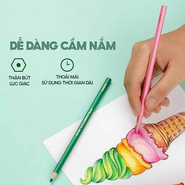 Bút chì màu với lõi chì chất lượng cao cấp màu ra đậm, đều hơn, màu sắc tươi sáng.
