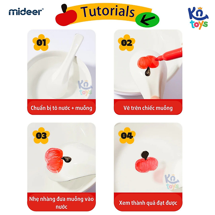 - Nhẹ nhàng đưa thìa vào nước từ mép hình vẽ trên thìa. Làm cho các bản vẽ trở nên sống động trên mặt nước.