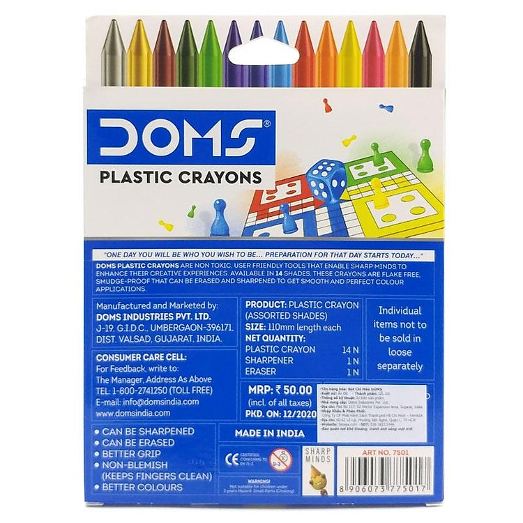 - Hộp Bút Sáp Màu DOMS 14 Màu 7501 với màu sắc chuẩn, tự nhiên và tươi sáng.