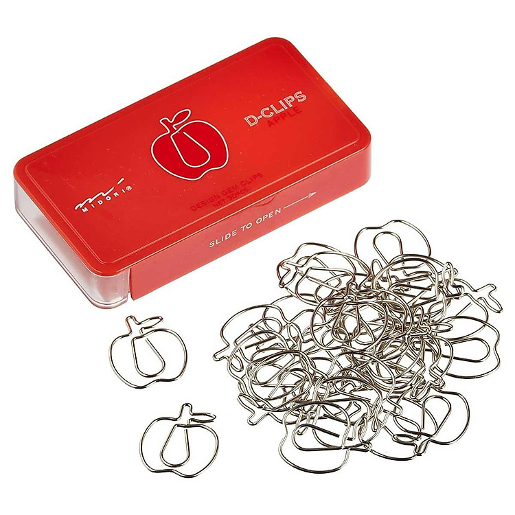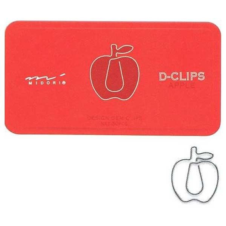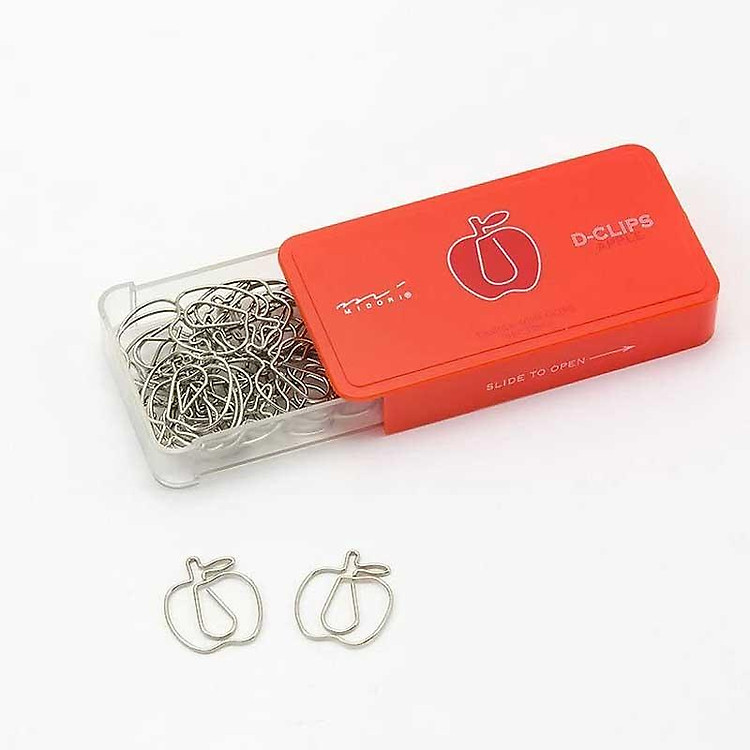- Hộp chứa 30 kẹp giấy D-Clip Midori 43218 hình quả táo dễ thương.