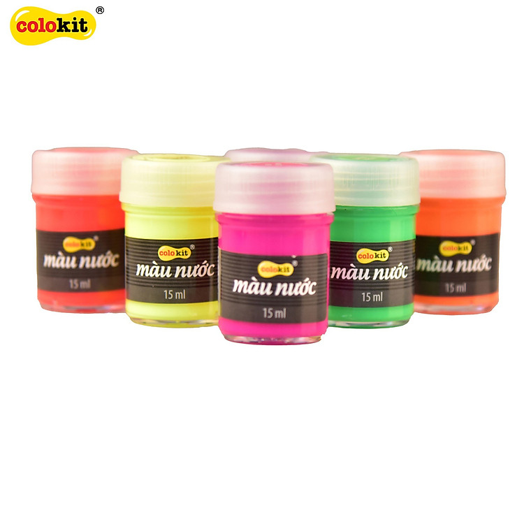 - Hộp màu nước Neon WACO-C011 từ thương hiệu Colokit, bao gồm 6 lọ 15ml mỗi màu.