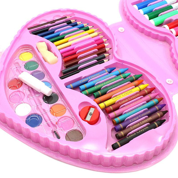 - Bộ sản phẩm bao gồm: 12 bánh màu nước, 12 bút lông, 12 bút sáp, 12 bút sáp dầu, 13 bút chì màu, 1 bút chì đen, 1 cọ vẽ, 1 bọt biển, 1 tẩy, 1 chuốt bút chì, 1 khay pha màu và 6 kẹp giấy.